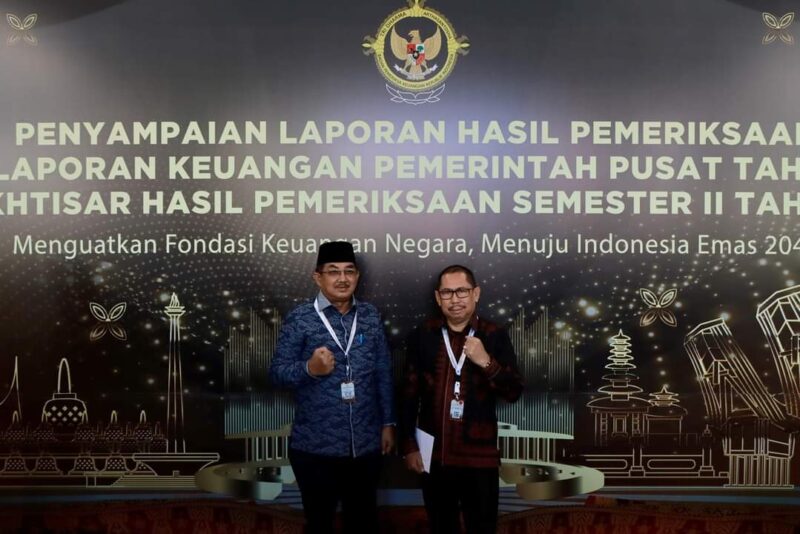 JAKARTA, Wartajambi.id – Bupati Tanjung Jabung Barat (Tanjabbar), Drs. H. Anwar Sadat, M.Ag bersama Ketua DPRD Tanjabbar H. Abdullah, SE, menghadiri penyerahan Laporan Hasil Pemeriksaan (LHP) atas Laporan Keuangan Pemerintah Pusat (LKPP) tahun 2023 oleh Badan Pemeriksa Keuangan Republik Indonesia(BPK-RI), Senin (08/07/24).