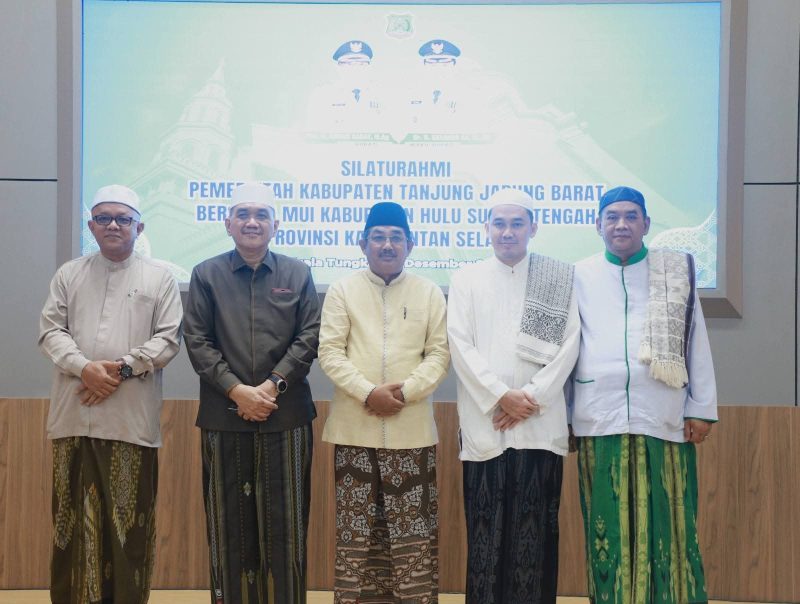Kuala Tungkal, Wartajambi.id – Bupati Tanjung Jabung Barat (Tanjab Barat), Drs. H. Anwar Sadat, M.Ag., menyambut penuh kehangatan kunjungan silaturahmi Majelis Ulama Indonesia (MUI) Kabupaten Hulu Sungai Tengah, Provinsi Kalimantan Selatan, di Rumah Dinas Bupati, Sabtu (13/12/2025). Kunjungan ini menjadi momentum penting dalam mempererat ukhuwah islamiyah dan memperkuat sinergi antarulama lintas daerah.