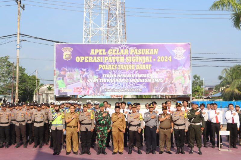 Tanjab Barat, Wartajambi.id – Kapolres Tanjab Barat, AKBP Agung Basuki, S.I.K., M.M., memimpin apel gelar pasukan Operasi Patuh Siginjai 2024 yang digelar di lapangan Mapolres Tanjab Barat. Operasi yang akan berlangsung selama 14 hari ini, dari 15 hingga 28 Juli 2024, bertujuan untuk meningkatkan disiplin berlalu lintas di wilayah tersebut.