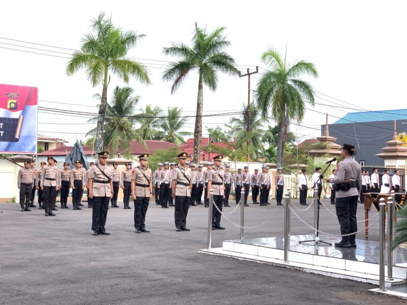 Upacara sertijab ini dipimpin langsung oleh Kapolres Tanjab Barat, AKBP Agung Basuki, S.I.K., M.M. selaku Inspektur Upacara.